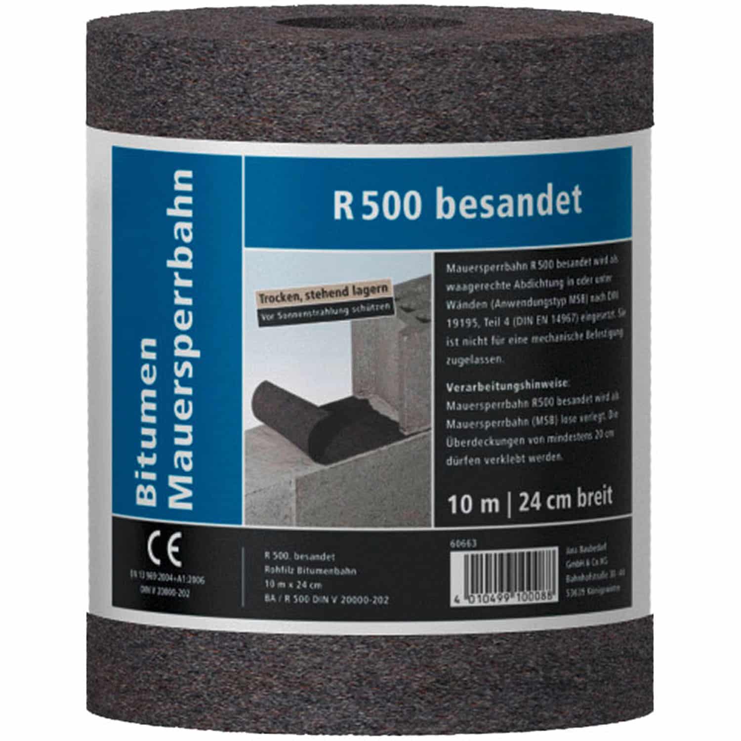 Mauersperrbahn R500 Länge 10 m für Wandstärke 24,0 cm: Effektiver Schutz vor aufsteigender Feuchtigkeit